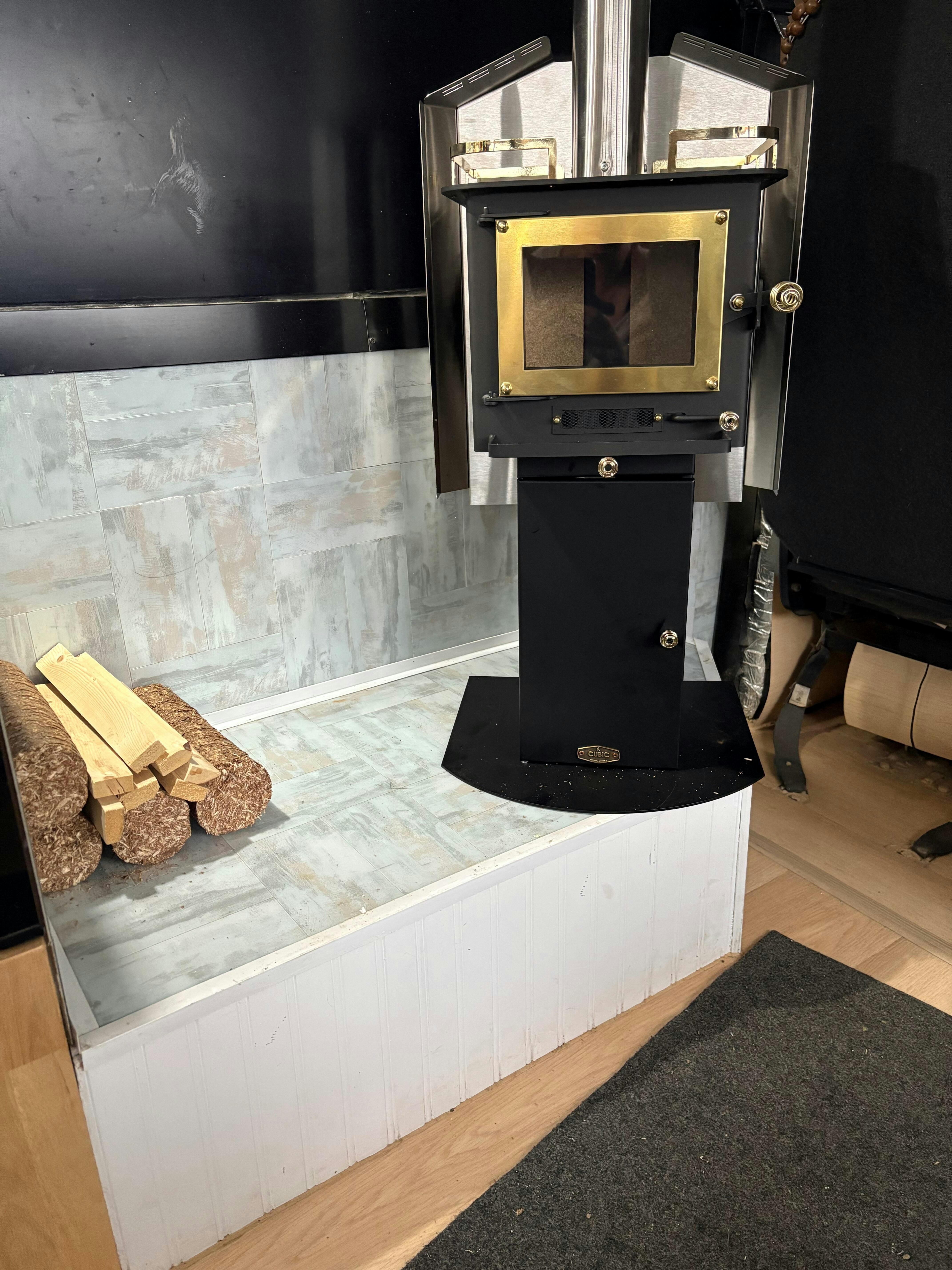 - Floor does not need shielding for the heat if the stove, but protection can be installed for possible embers and ash.